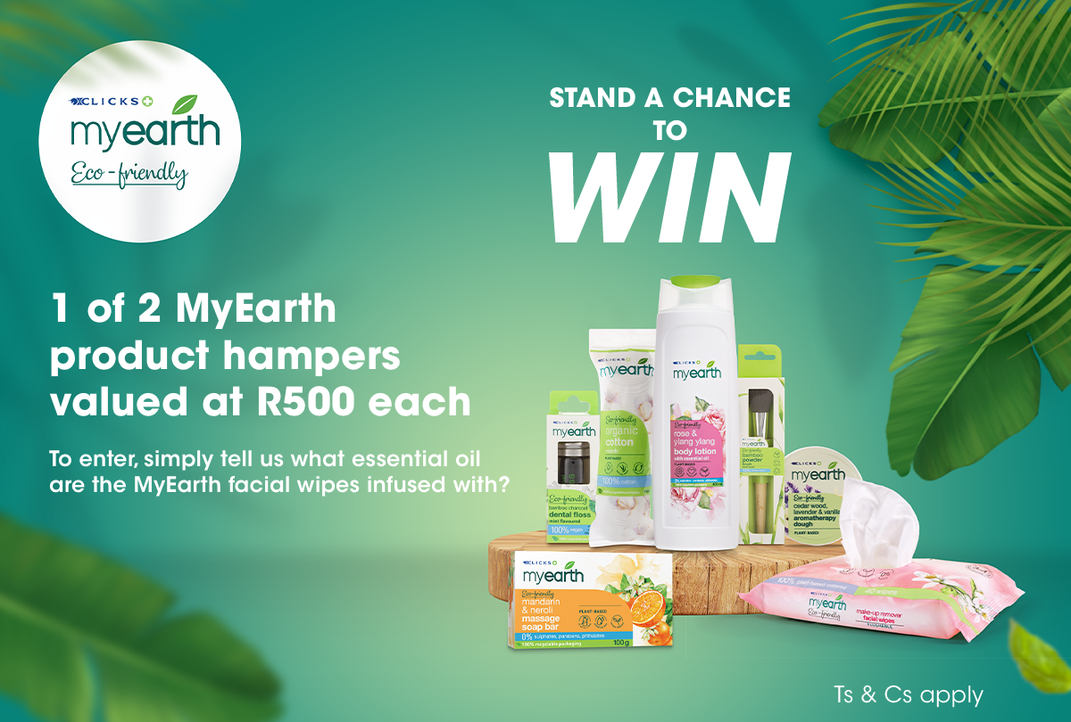 Stand a chance to WIN 1 of 2 MyEarth product hampers valued at R500 each. To enter, tell us what essential oil MyEarth facial wipes are infused with.