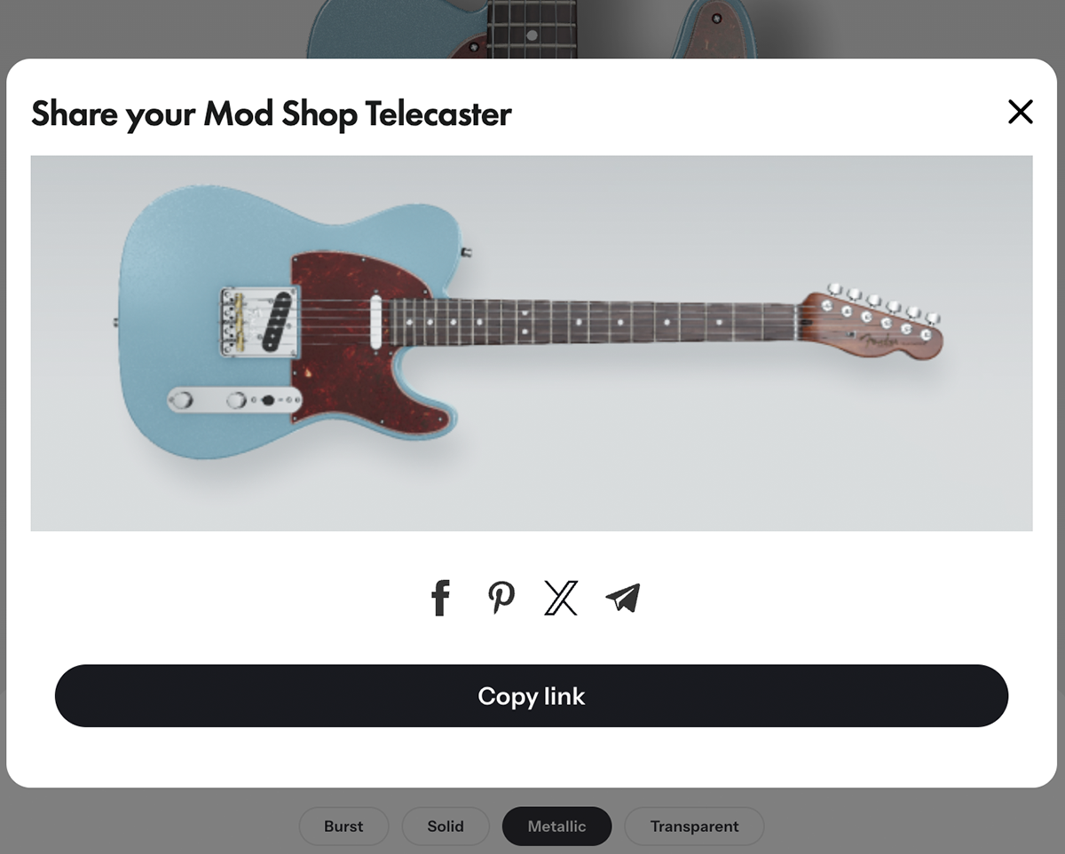 Click 'share' to generate a unique link to your Mod Shop Telecaster.