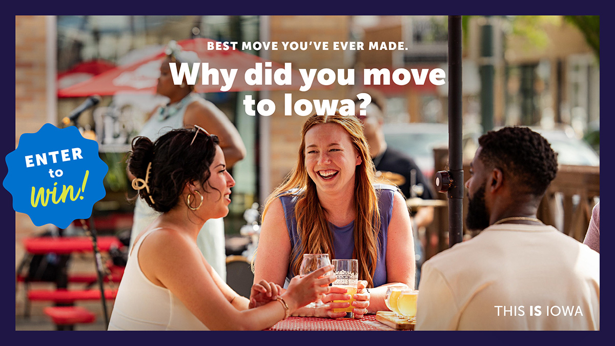 Tell us why you moved to Iowa, and what you’ve discovered about life here since making the leap. Is it the perfect place to plant roots and build a future for yourself or your family? Did you find a community that feels like home? Or perhaps found a new level of life that’s achievable, like owning a home or launching a career or business that’s uniquely yours. Your story could inspire others to make The Best Move to Iowa and earn you a $1,000 Visa gift card!