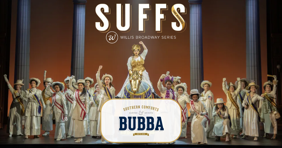 Kick things off at Bubba, a downtown favorite serving Southern-inspired comfort food - from fried chicken and shrimp & grits to craft cocktails in a lively, modern setting. Then enjoy Suffs, the Tony Award-winning Broadway musical that brings the fight for women’s suffrage to life through bold storytelling, unforgettable music, and the trailblazing voices behind a pivotal moment in American history.