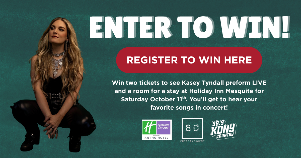 Enter to win a room and two tickets to see Kasey Tyndall LIVE in concert! Saturday, October 11th at 7pm at the Gold Butte Ballroom in the Holiday Inn, Mesquite. Tickets are on sale now at https://80entertainment.ticketspice.com/kasey-tyndall-acoustic-concert