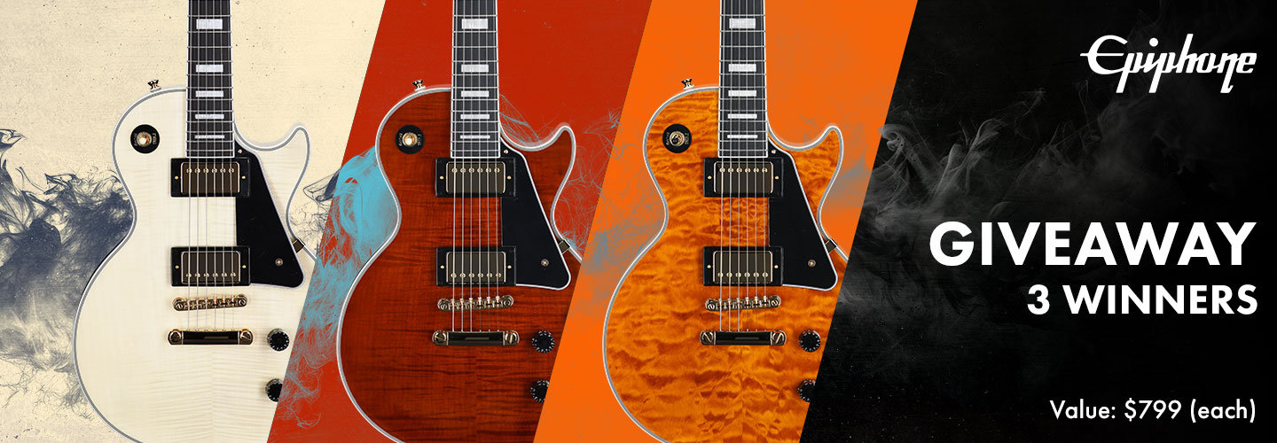 It’s a special time and AMS is ready to help inspire new performances with wonderful new gear from Epiphone. This December, we’re excited to give away not one… not two … but THREE Epiphone Exclusive Les Paul Custom Electric Guitars with gig bags. That means three different winners will be drawn – triple the prize power!