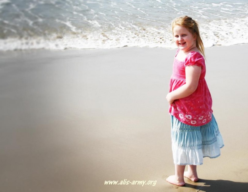 Ali in the ocean. Ali is a 6 yr old little girl who lives in the United States, suffers from Stone Man Syndrome, or FOP. FOP is one of the rarest and most disabling conditions know to man. Unfortunately it is terminal and there is no cure or treatment available at this time. 'The water may wash away her footprints, but nothing will take away the memory of her walking in the ocean for the first time' Ali - USA - Fibrodysplasia ossificans progressiva