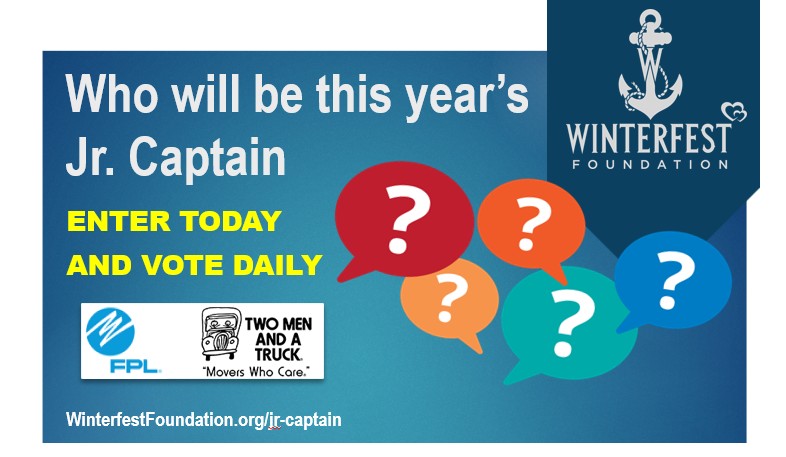 2025 Winterfest Jr. Captain Contest powered by FPL and moved by TWO MEN AND A TRUCK. Vote daily for one of the non-profit nominees. Voting is once daily: starting on October 2, 2025, and ending on October 15, 2025. (This page will be tested before the starting date and time, but votes will not count until October 2, 2025, at 10 AM Eastern time)