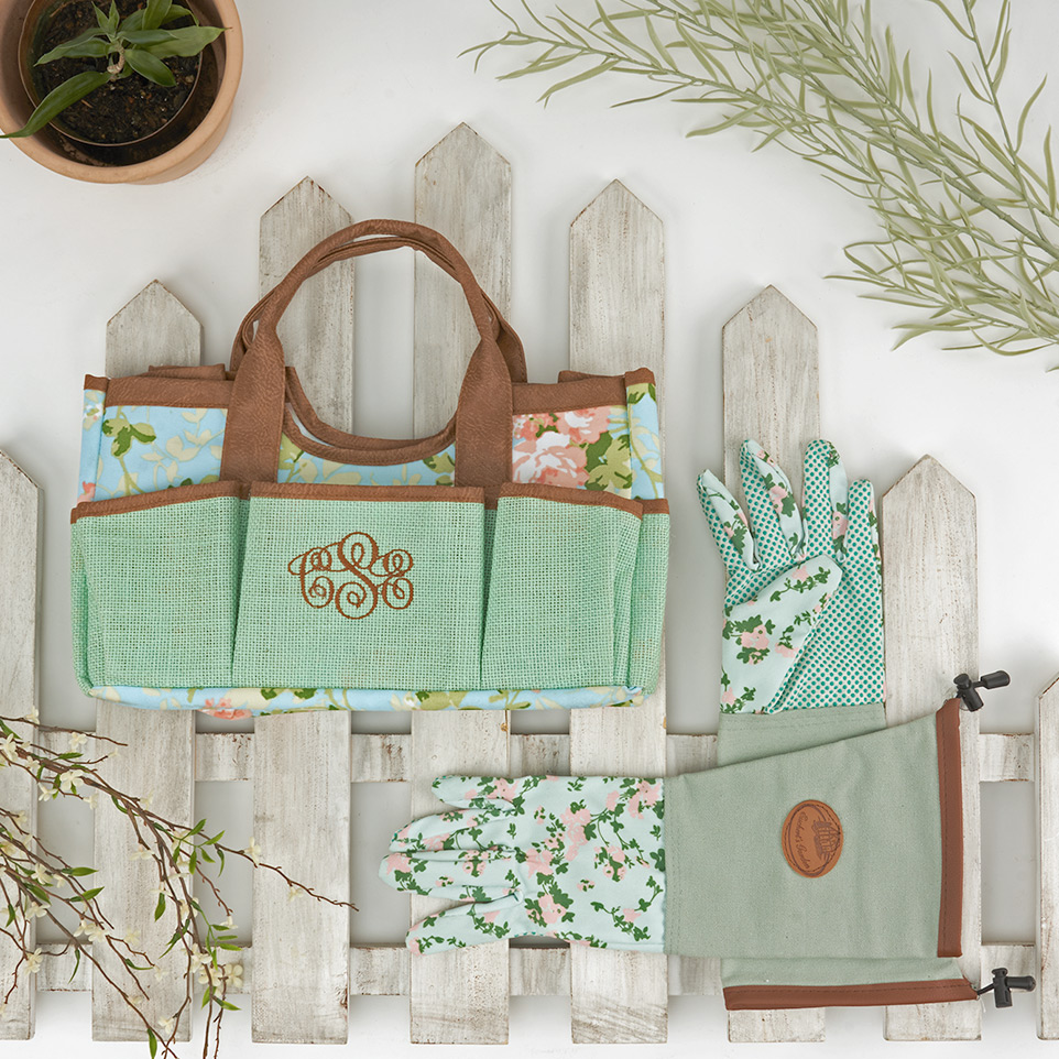 · Personalized Rose Print Jute Garden Tote Bag