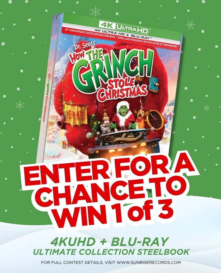 Enter for your chance to win 1 of 3 copies of Dr. Seuss' How the Grinch Stole Christmas, presented in 4K UHD + Blu-ray Steelbook.