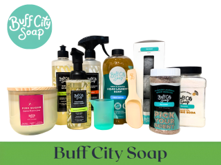 Enter to WIN the Ultimate Home & Laundry Buff Bundle: Dosing Cup, Laundry Soap Plus, Wooden Scoop, Scent Booster, Set of Dryer Balls, Multi-Surface Cleaner, Dish Soap, Foaming Hand Soap, Candle, Liquid Laundry, & a Free Bath Bomb Party Certificate for up to 10 People!