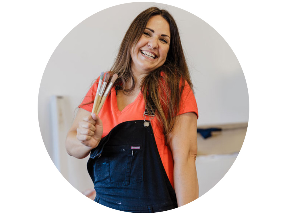Meet Kerry Evitts, one of our key partners undertaking the judging of our Big Art Comp! Kerry is a British-born, Melbourne-based painter, psychotherapist and mum of three. She has a vibrant art studio in Melbourne where you’ll find her running group art activities to being up on a ladder painting murals!