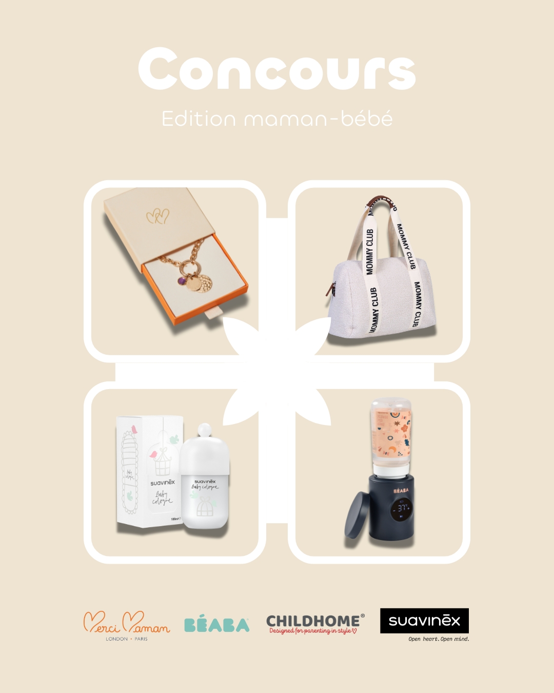 Béaba, Childhome, Suavinex et Merci Maman s'associent pour offrir 300€ de cadeaux à une famille super chanceuse ! ♡