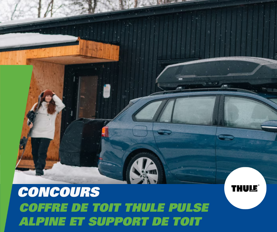 INSCRIVEZ-VOUS À NOTRE INFOLETTRE ET COUREZ LA CHANCE DE REMPORTER UN COFFRE DE TOIT THULE PULSE ALPINE ET UN SUPPORT DE TOIT THULE WINGBAR EVO !