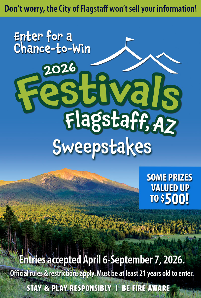 Don't worry! The information collected on this form stays private and is used only for the purposes of this sweepstakes. If you would like to hear more from Discover Flagstaff, please check the box below to receive future Discover Flagstaff information.