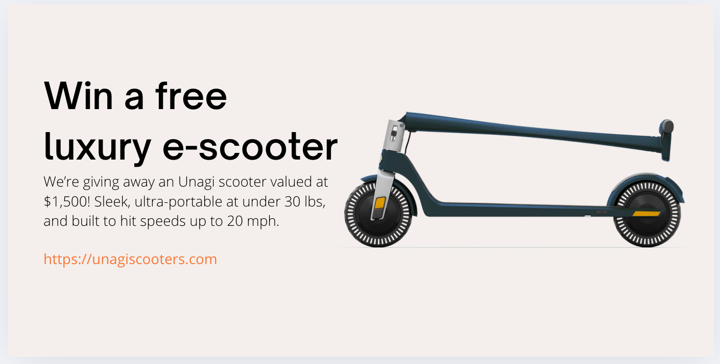 We’re giving away a luxury Unagi e-scooter valued at $1,500!