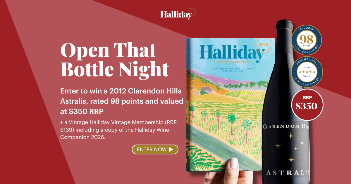 • In celebration of “Open That Bottle Night’ on 28 February, we’re giving you the chance to add a Clarendon Hills Astralis 2012 to your collection, valued at $350 RRP and rated 98 points. But that’s not all; the lucky winner will also receive a Halliday Wine Companion Vintage Membership, including the latest edition of our wine “bible”, the 2026 Halliday Wine Companion.