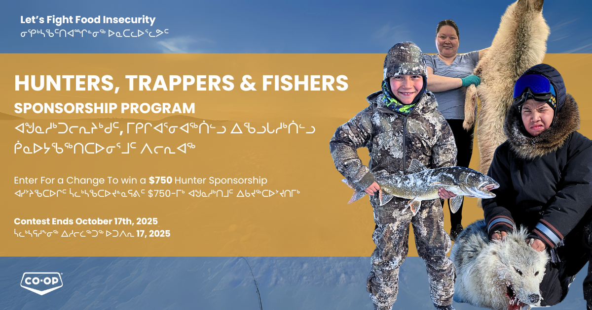 Fight food insecurity in the Arctic! Arctic Co-operatives Limited is sponsoring a program to support hunters doing community harvesting.