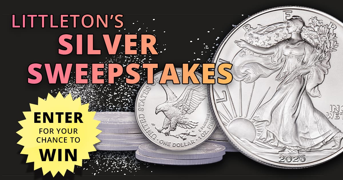 NO PURCHASE OR PAYMENT OF ANY KIND IS NECESSARY TO ENTER OR WIN. PURCHASE OR PAYMENT DOES NOT IMPROVE YOUR CHANCE OF WINNING. Littleton’s April 2026 Silver Sweepstakes is open only to legal residents of the 50 U.S. States & D.C., age of majority +. Void elsewhere & where prohibited. Ends 4/30/2026. Subject to Official Rules.
