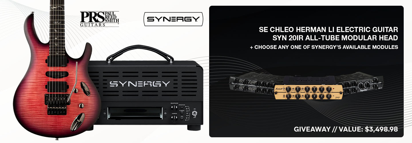 Get ready for a guitar giveaway that blends power, agility, and plenty of performance technology! This November, one lucky winner will take home a PRS SE Chleo Herman Li Signature Electric Guitar in a deep Orchard Dusk finish with a matching gig bag AND a Synergy SYN 20IR All-Tube 20-Watt Modular Guitar Amp Head. The winner will also be able to choose one of Synergy’s available modules for the SYN 20IR.