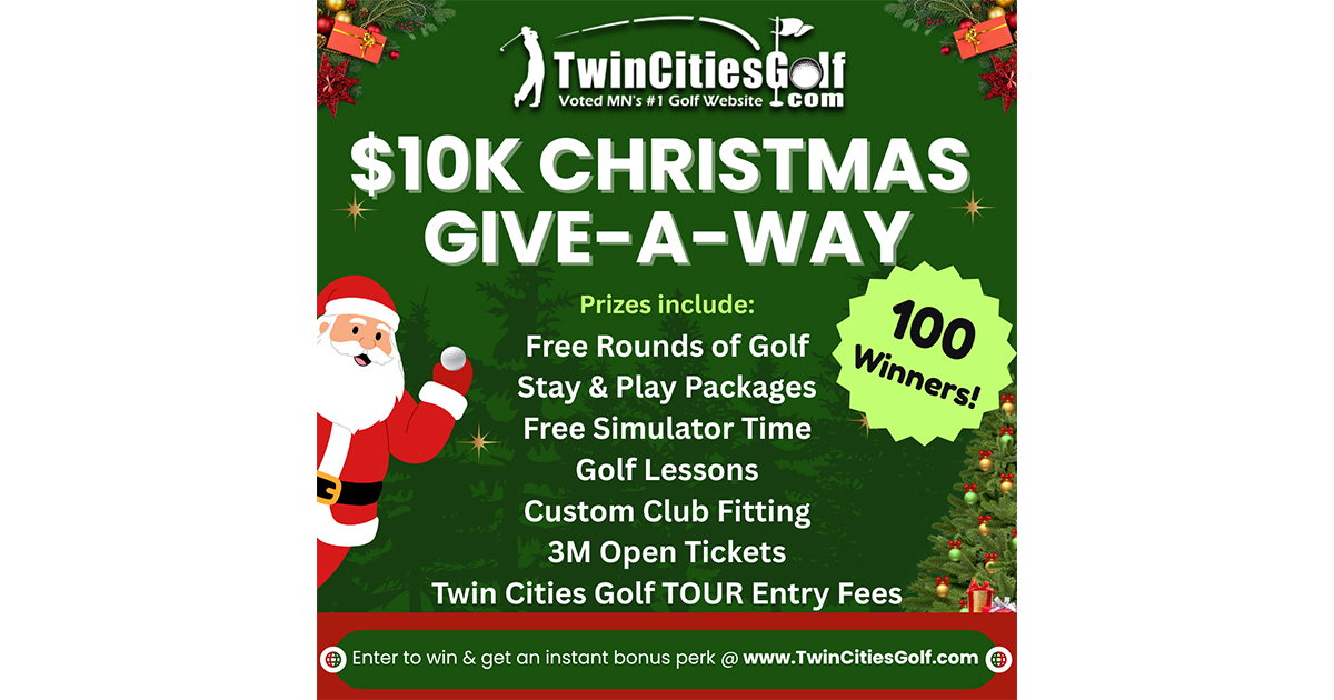 Enter to win over $10,000 in prize give-a-ways including hospitality tent tickets to the 2026 3M Open, Stay & Play trips to play Lawsonia Links (#20 Best Public Course in America) & Wildflower GC, free golf, free lessons, and indoor golf simulator time from TwinCitiesGolf.com.