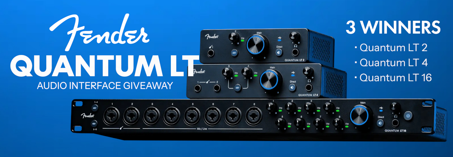 This month, be one of Three Winners to get one of Fender's New Quantum LT Interfaces. Each winner will receive either a Quantum LT 2, a Quantum LT 4 or the flagship Quantum LT 16 Interface - Enter Now for your chance to win! Prize values between $149.99 - $499.99!